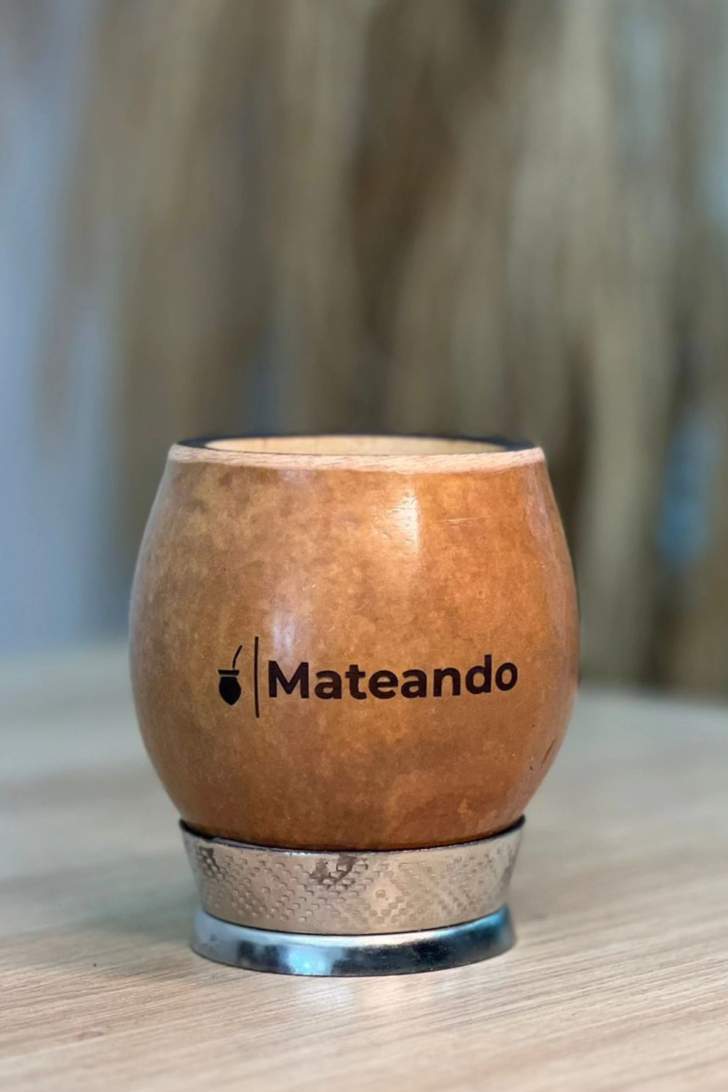 Cuia coquinho sem bocal com pé e logo da Mateando.